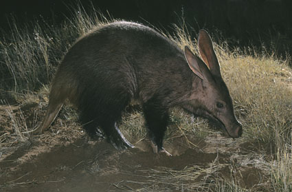 |  Springhare, Pedetes capensis, Nocturnal species, Kgalagadi Transfrontier Park, Kalahari, South Africa, NDE, 25601 (25601) |  Aardvark, Orycteropus afer, emerging from burrow at dusk, Tuissen de Riviere NR, Free State, South Africa. (25732) | |