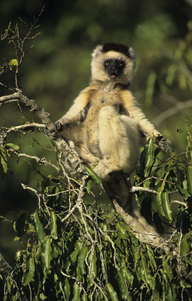 |  Ringtailed Lemur, Lemur catta, running, Berenty Private Reserve, Madagascar (25460) |  Verreaux`s Sifaka (lemur), Propithecus verreauxi, "dancing", Berenty Private Reserve, Madagascar. (25463) |